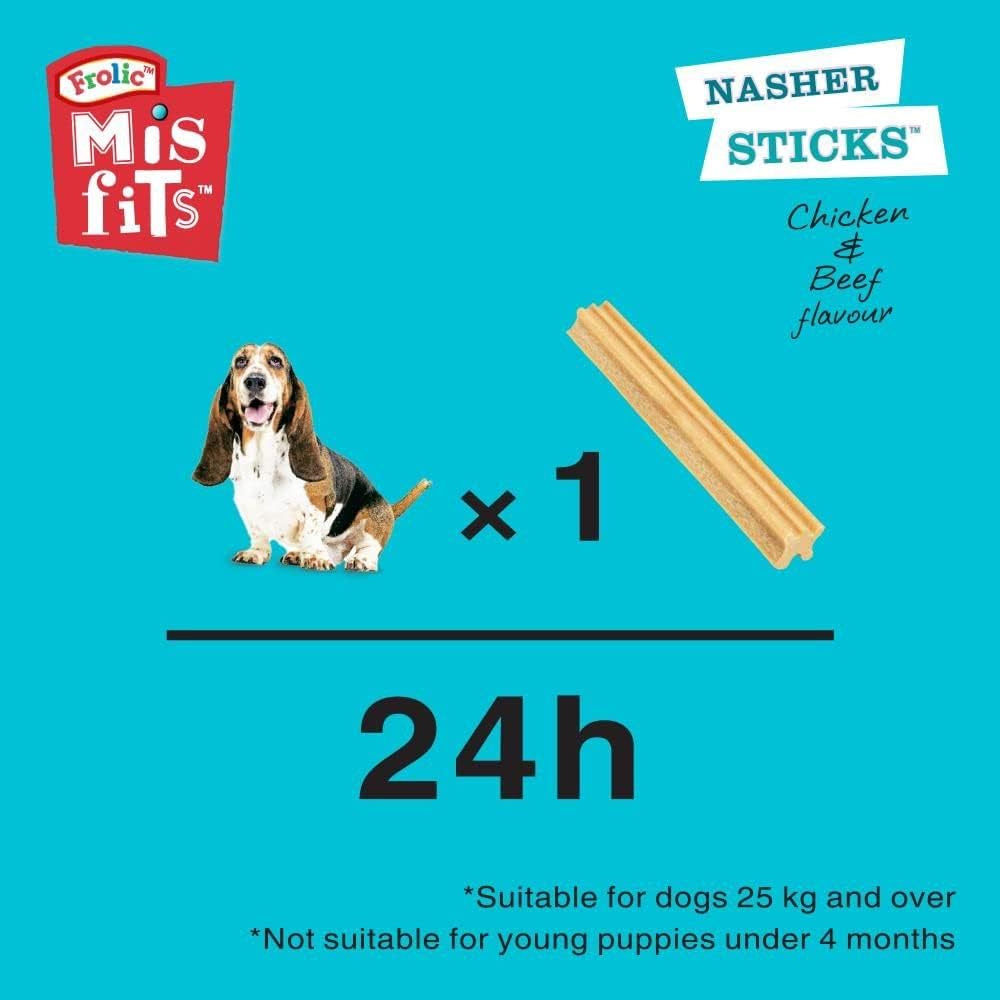 Frolic Misfits Nasher Sticks – Dog Treats for Medium Dogs – with Chicken and Beef – 10 x 175 g