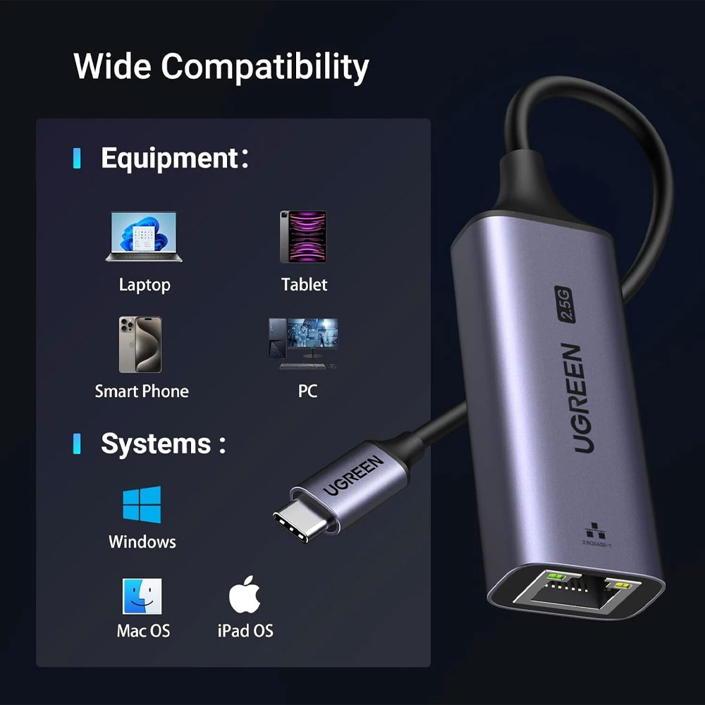 UGREEN Ethernet USB C (Thunderbolt 4/3) to Rj45 LAN Adapter 2.5G, Aluminum