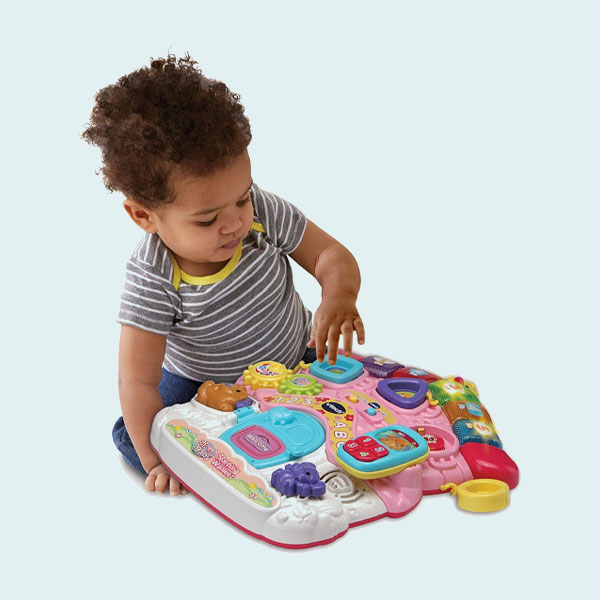 - EDUCATIONAL TOY: With a fun-filled activity panel that includes 5 light up buttons, shape sorter, gears, animal buttons and a role play phone, we ensure your baby learns loads while having heaps of fun